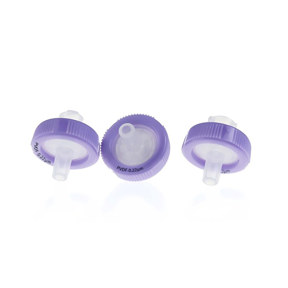 13 mm hydrophober PVDF-Spritzenfilter 0,22 µm mit farbigem Markierungsring und Aufdruck. 100 Stück/Packung, 20,00 Packungen/Karton.