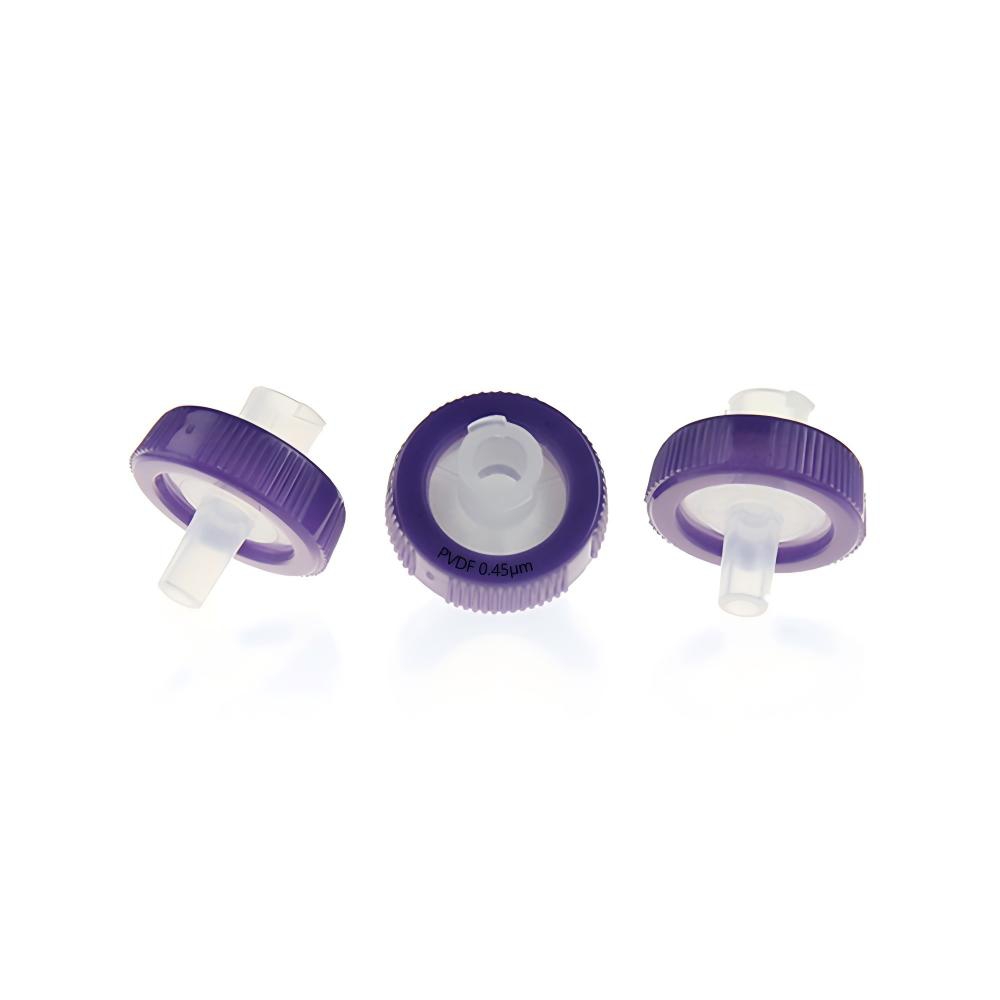 13 mm hydrophober PVDF-Spritzenfilter 0,45 µm mit farbigem Markierungsring und Aufdruck. 100 Stück/Packung, 20,00 Packungen/Karton.