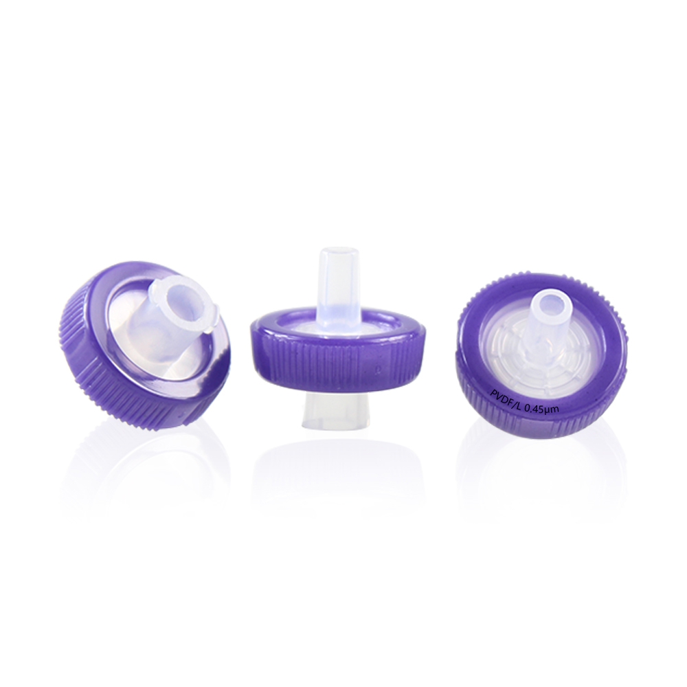 13 mm PVDF hydrophiler Spritzenfilter 0,45 µm mit Außenring und Aufdruck. 100 Stück/Packung, 20,00 Packungen/Karton