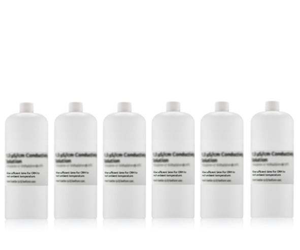 Das Solution 25-Testkit enthält (1) 25 μS/cm-Standard in einer 1-Liter-HDPE-Flasche und (5) vorgereinigte 125-ml-HDPE-Weithalsflaschen.