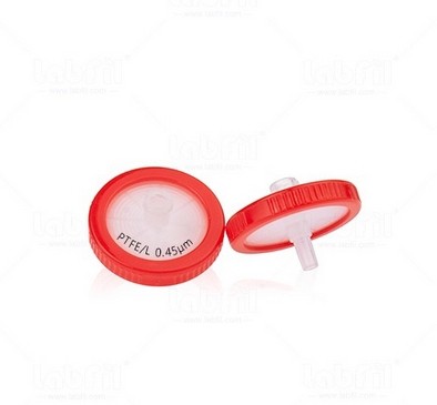 33 mm hydrophober PTFE-Spritzenfilter 0,45 µm mit farbigem Markierungsring und Aufdruck. 100 Stück/Packung, 5,00 Packungen/Karton.