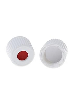 8-425 Weißer offener Schraubverschluss mit 8 mm rotem PTFE-Rohr und 1,5 mm dickem weißem Silikonseptum. 100 Stück/Packung, 30,00 Packungen/Karton