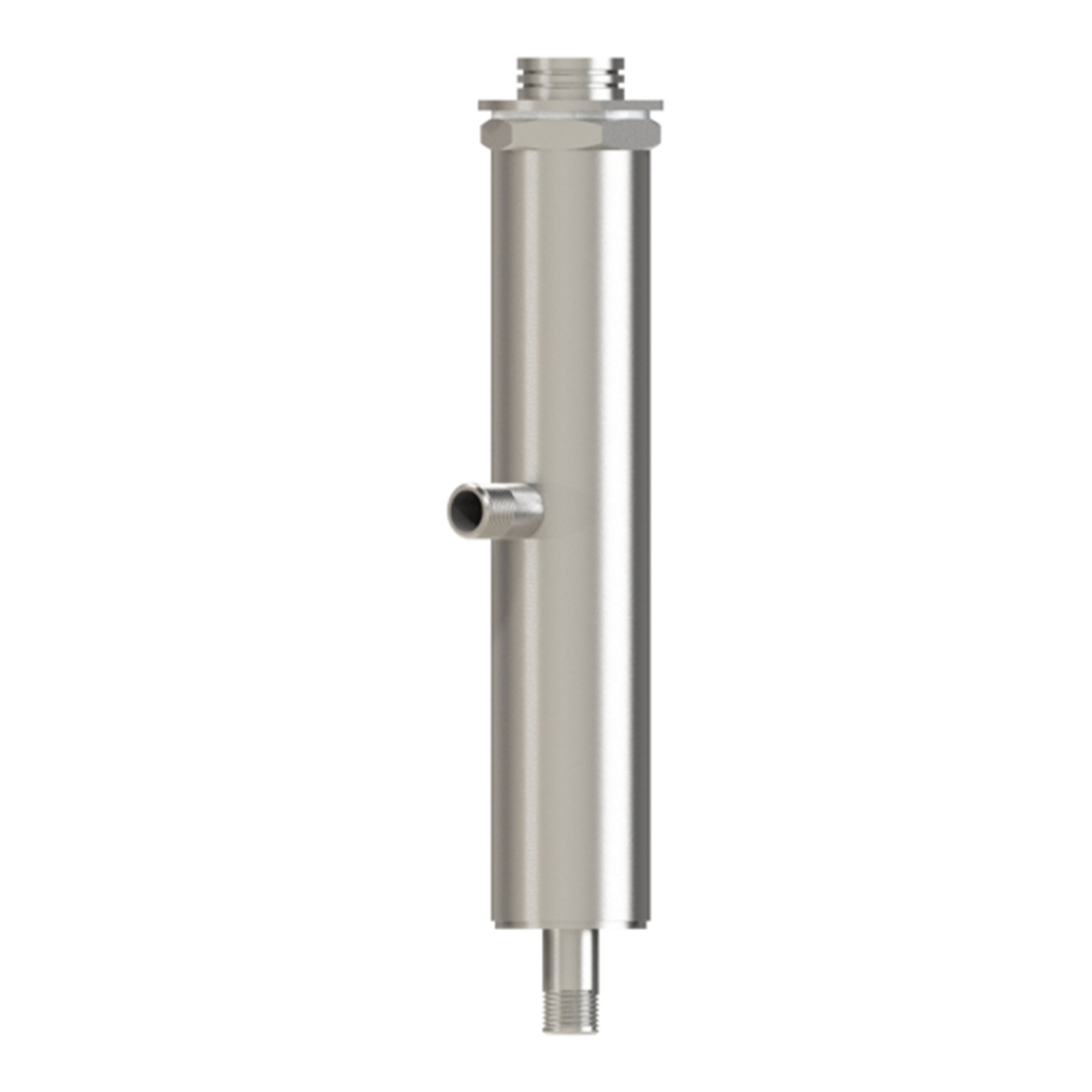 Das Durchfluss-Beschallungsgefäß wird direkt an das Außengewinde des Stufen- oder Boosterhorns montiert. Die Flüssigkeit wird von unten gegen die schallabstrahlende Fläche der Sonotrode gepumpt, passiert direkt das Kavitationsfeld und verlässt die Kammer über den Auslass. Eine Kreislaufbeschallung ist ebenfalls möglich.