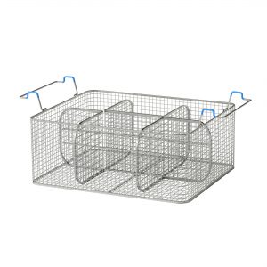 Während des Ultraschallbetriebs darf nichts auf den Wannenboden gelegt werden, da es zu einem Abrieb zwischen dem Beschallungsgut und der Ultraschall-Schwingwanne kommen kann. Es wird daher der Einsatz eines passenden Korbes zur Aufnahme des Beschallungsgutes empfohlen. Die BANDELIN-Körbe sind so konstruiert, dass sich das Beschallungsgut stets im optimalen Bereich des Kavitationsfeldes (1-2 cm vom Boden entfernt) in der Schwingwanne befindet. Mithilfe eines Korbes kann das Beschallungsgut außerdem komfortabel im Gerät platziert und nach dem Betrieb z. B. zur Spülung entnommen werden, ohne dass der Anwender mit der Beschallungsflüssigkeit in der Schwingwanne in Kontakt kommt.
