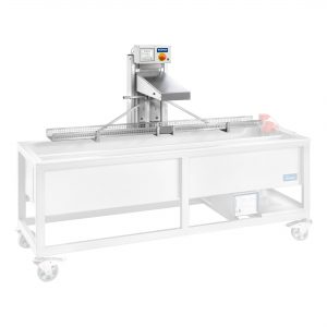 Hubeinrichtung mit Oszillation und Parallelverschiebung über dem Becken einschließlich des Warenkorbs (an der Schmalseite offen)