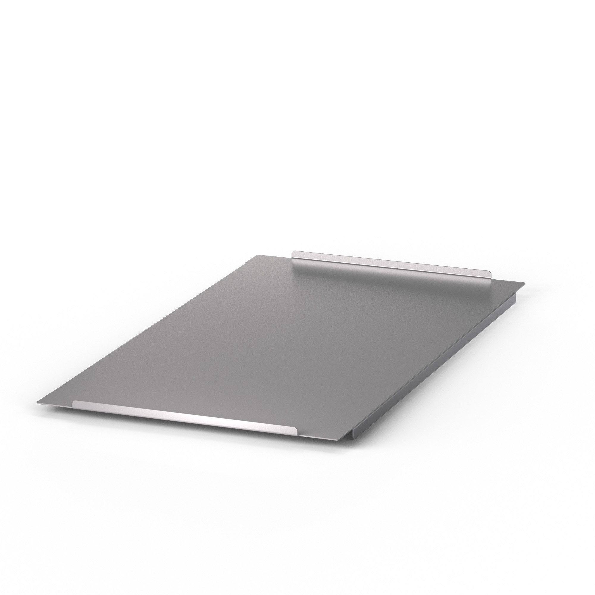 Ein Tropfblech aus Edelstahl dient zur Abdeckung des Zwischenraumes von zwei nebeneinander stehenden SONOREX TECHNIK Ultraschallbädern.