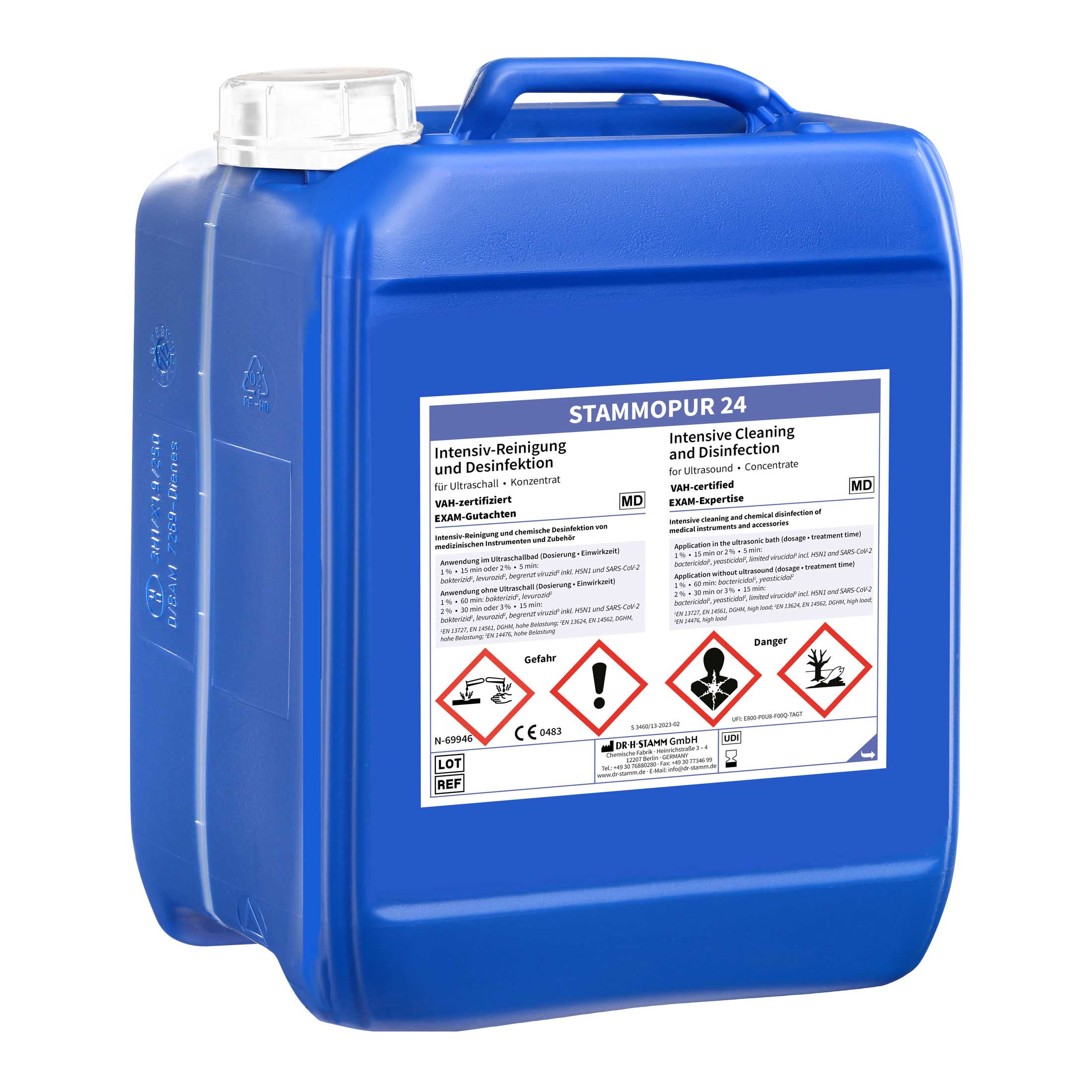 STAMMOPUR 24 ist ein Konzentrat zur manuellen desinfizierenden, nicht-fixierenden Intensiv-Reinigung und zur chemischen Desinfektion allgemeiner, chirurgischer, invasiver und nicht-invasiver medizinischer Instrumente und Zubehör, sowie Laborgeräte und Laborinstrumentarium, sofern diese als Medizinprodukte klassifiziert sind, im Ultraschallbad sowie im Tauchbadverfahren.