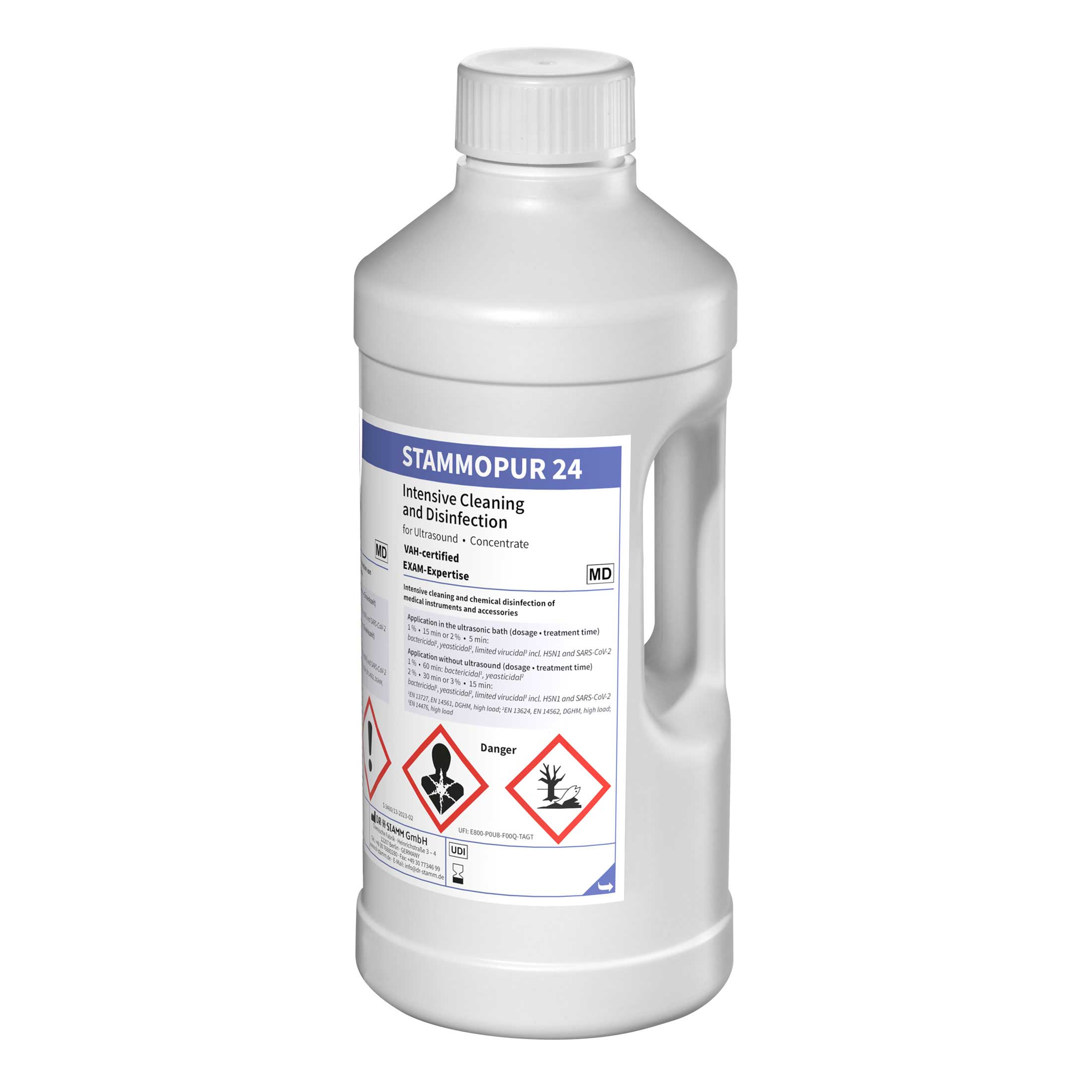 STAMMOPUR 24 ist ein Konzentrat zur manuellen desinfizierenden, nicht-fixierenden Intensiv-Reinigung und zur chemischen Desinfektion allgemeiner, chirurgischer, invasiver und nicht-invasiver medizinischer Instrumente und Zubehör, sowie Laborgeräte und Laborinstrumentarium, sofern diese als Medizinprodukte klassifiziert sind, im Ultraschallbad sowie im Tauchbadverfahren.