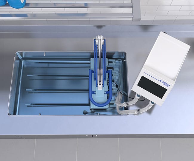 Die Dosiereinheit für das TRISON ermöglicht die automatisierte Befüllung und Entleerung des Ultraschallbads mit Wasser und Reinigungschemie. Alle Prozesse werden dabei über die zentrale Steuereinheit TRISON Base gesteuert.