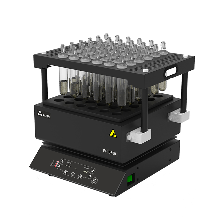 Das korrosionsgeschützte Graphit-Aufschlussinstrument der EH-Serie ist ein Probenvorbereitungsgerät, das für den Probenaufschluss in einer hochkonzentrierten Säureumgebung geeignet ist. Das System kann bis zu 60 Proben gleichzeitig aufschließen.