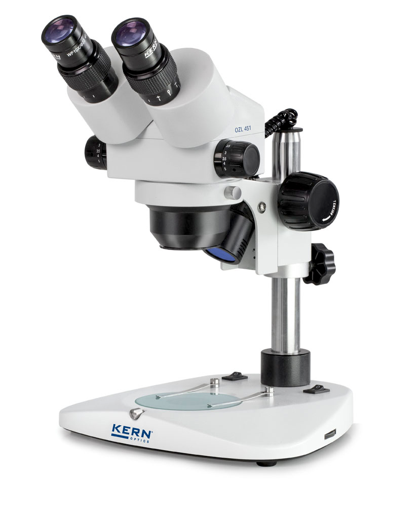 - Das KERN OZL 451 Stereo-Zoom-Mikroskop überzeugt durch seine guten optischen Eigenschaften, einfache Bedienung und höchsten ergonomischen Arbeitskomfort