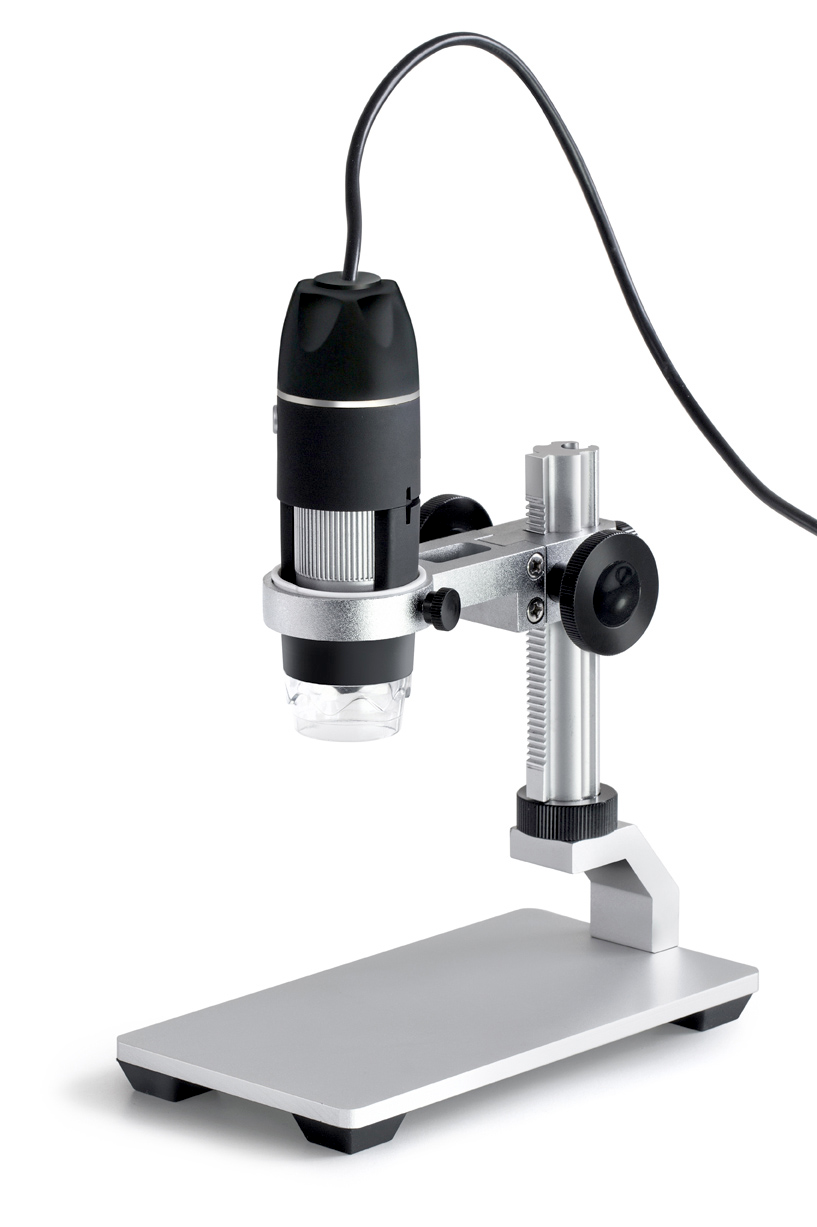 - Durch die einfache Einstellung der Vergrößerung lassen sich mit dem USB-Mikroskop alle gängigen Proben vergrößern. Der Fokus ist auf eine 10× sowie 200× Vergrößerung einstellbar