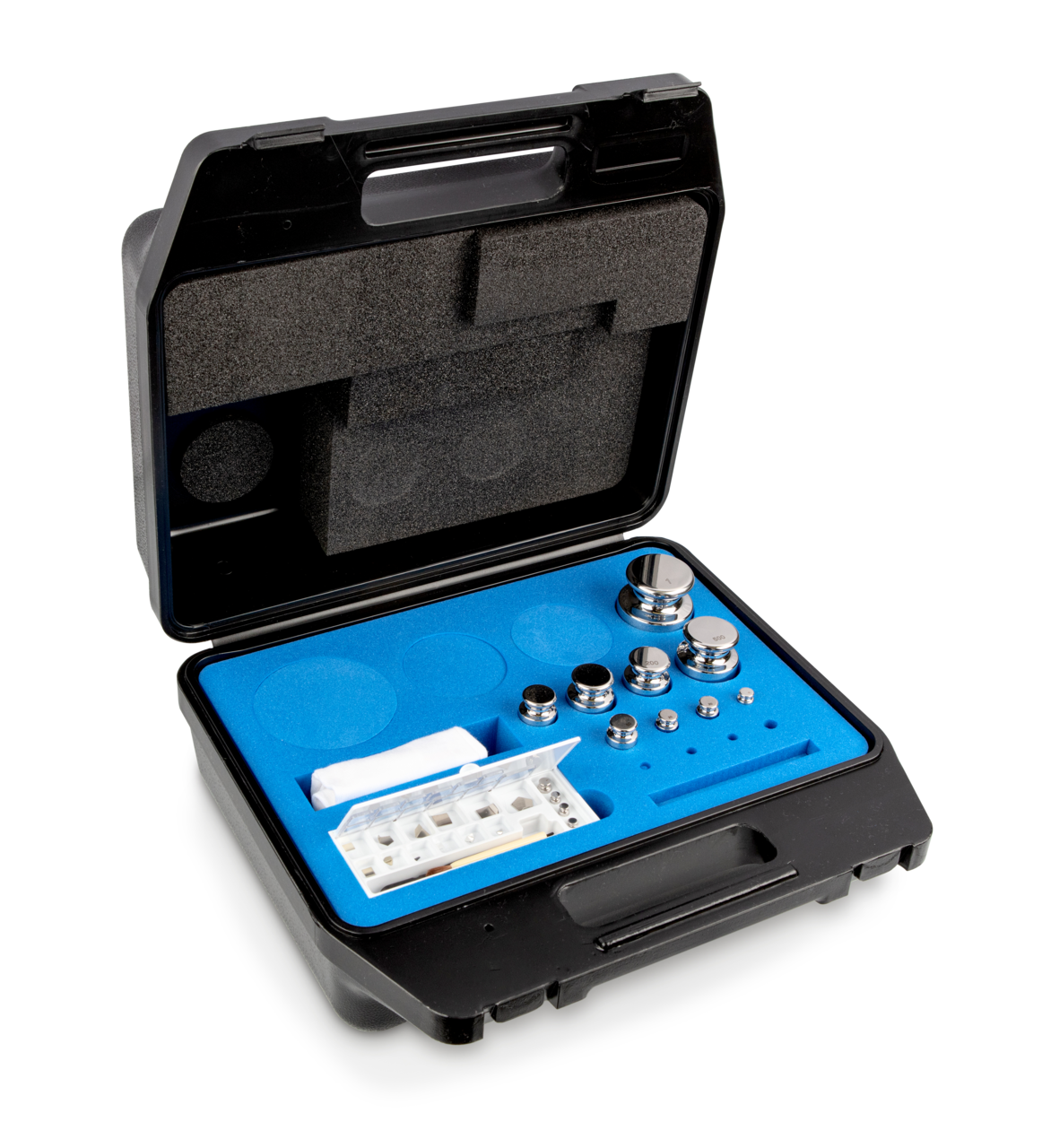 Gewichtsatz 303-064 (OIML-Klasse E1, Nennwert 1 mg – 1 kg, Knopf, Edelstahl poliert, im Kunststoffkoffer)