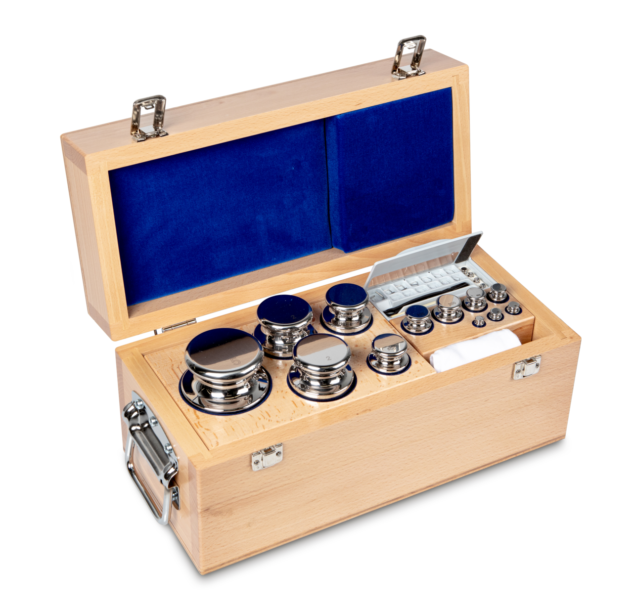 E1 1 mg – 5 kg Gewichtsatz im Holzetui, Edelstahl poliert