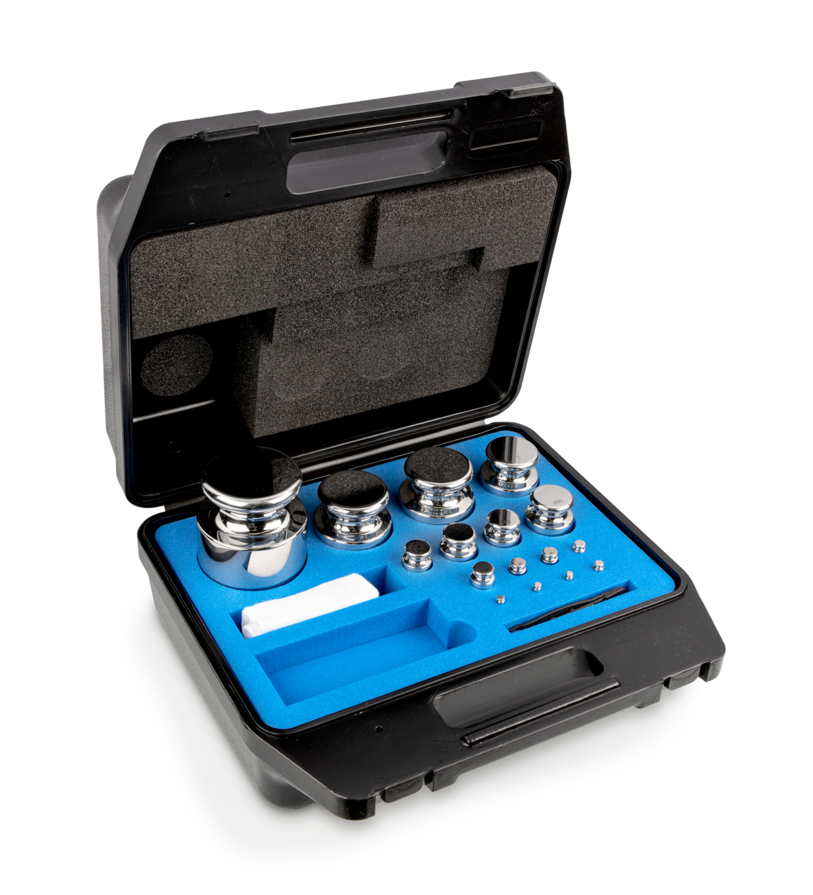 Gewichtsatz 324-084 (OIML-Klasse F1, Nennwert 1 g – 5 kg, Knopf, Edelstahl poliert, im Kunststoffkoffer)