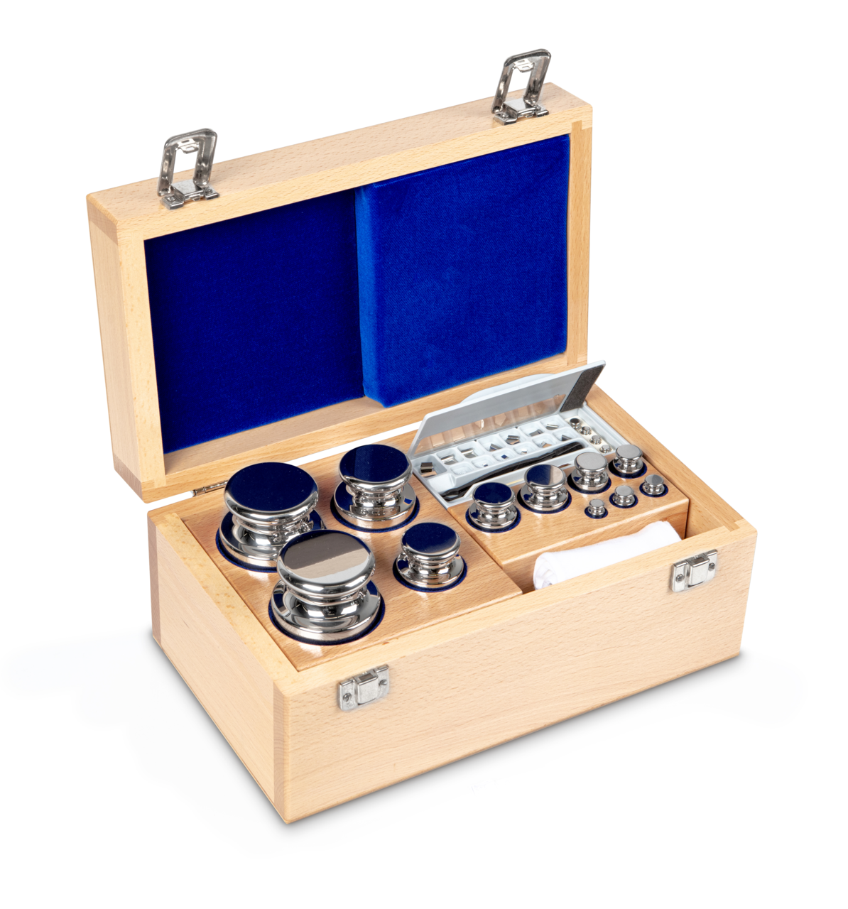 Gewichtsatz 325-072 (OIML-Klasse F1, Nennwert 1 mg – 2 kg, Eco-Form, Edelstahl poliert, im Holzetui)