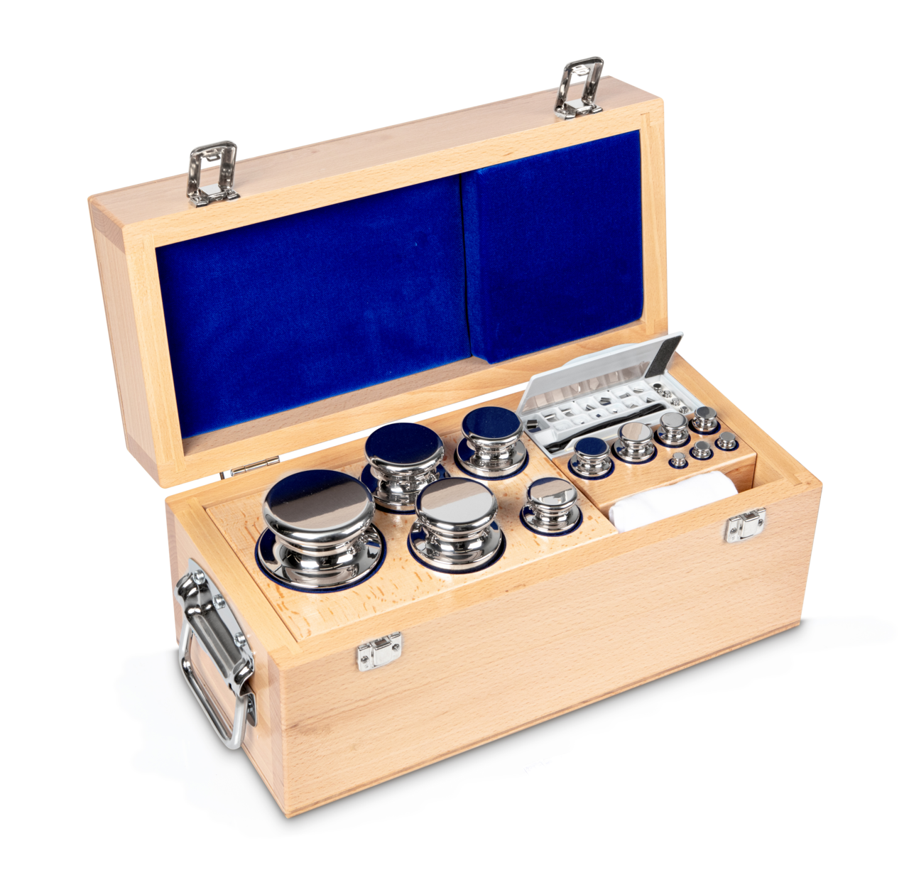 Gewichtsatz 325-082 (OIML-Klasse F1, Nennwert 1 mg – 5 kg, Eco-Form, Edelstahl poliert, im Holzetui)