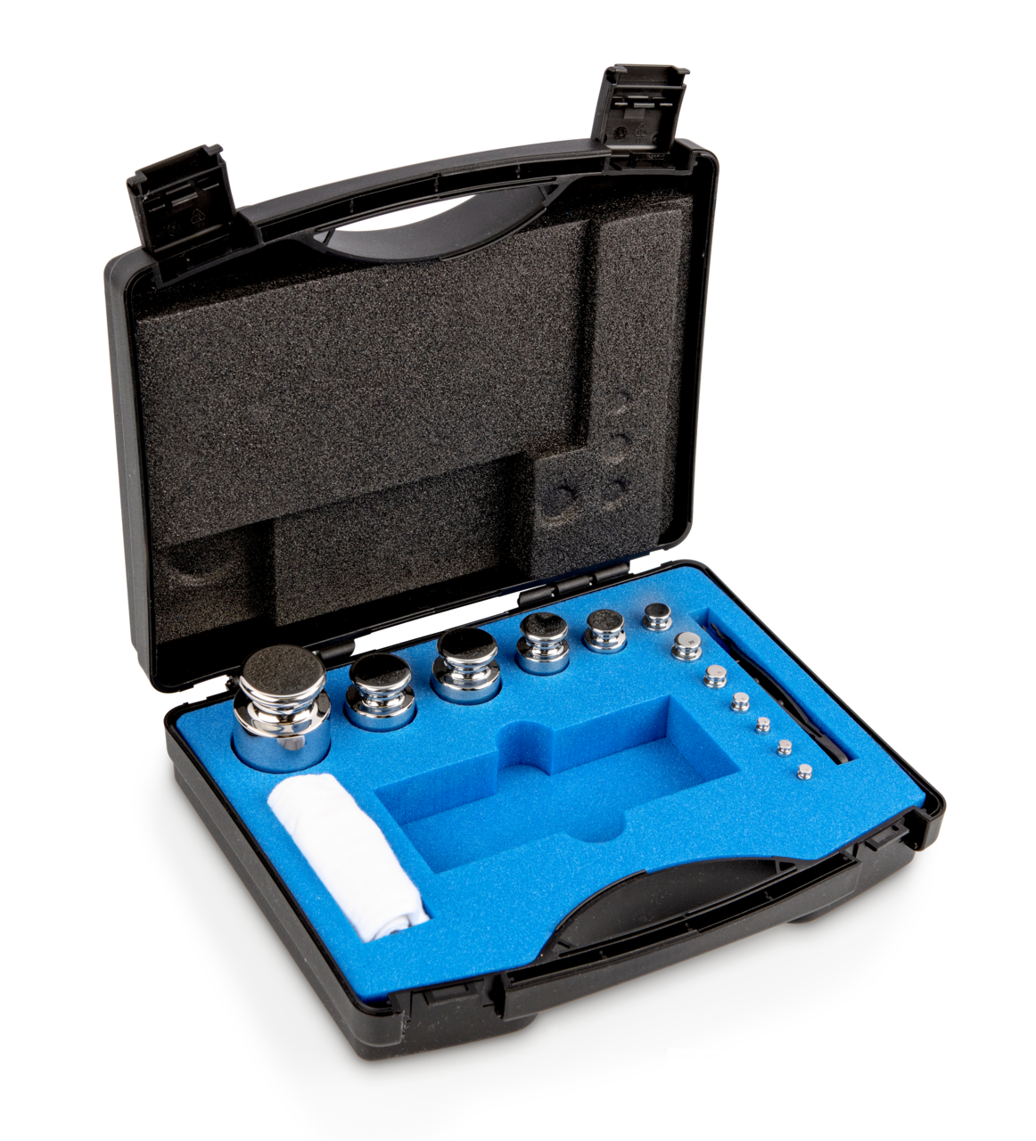 Gewichtsatz 326-054 (OIML-Klasse F1, Nennwert 1 g – 500 g, Eco-Form, Edelstahl poliert, im Kunststoffkoffer)