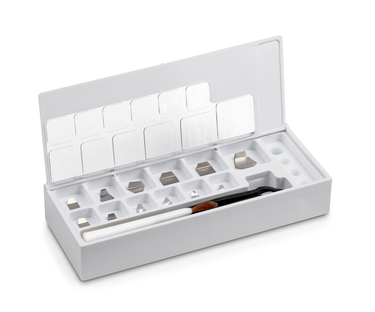 Gewichtsatz 328-22 (OIML-Klasse F1, Nennwert 1 mg – 500 mg, Plättchen, Edelstahl poliert, im Kunststoff-Etui)