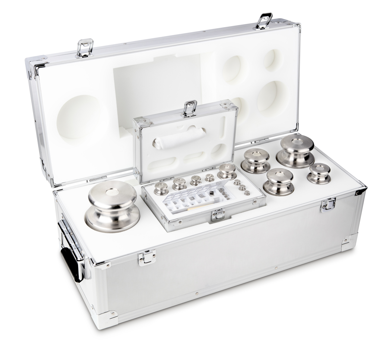 F2 1 mg – 10 kg Gewichtsatz im Aluminiumetui, Edelstahl feingedreht