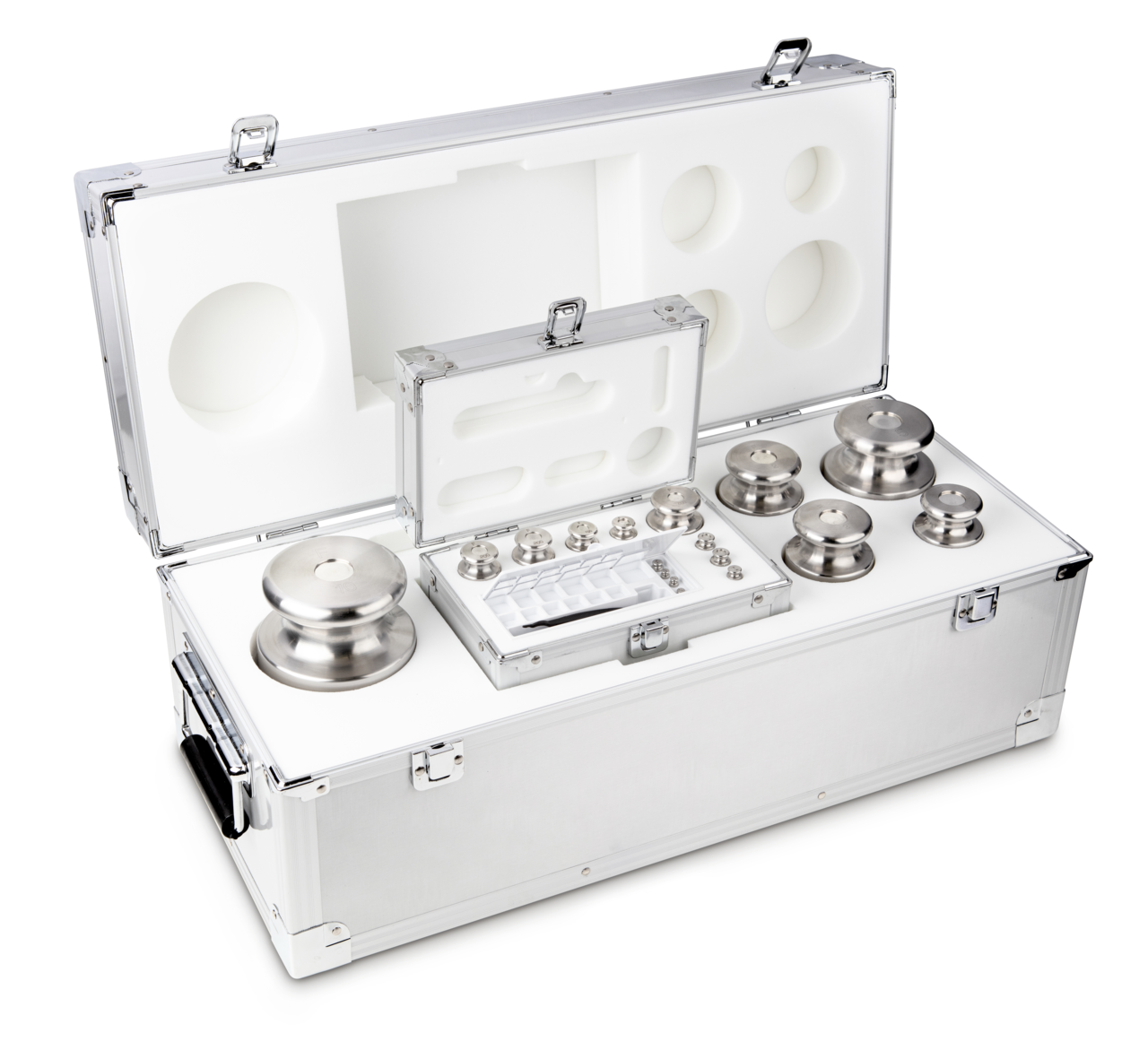 Gewichtsatz 334-096 (OIML-Klasse F2, Nennwert 1 g – 10 kg, Knopf, Edelstahl feingedreht, im Aluminiumetui)
