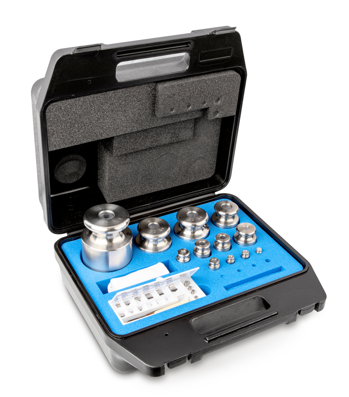 Gewichtsatz 343-084 (OIML-Klasse M1, Nennwert 1 mg – 5 kg, Knopf, Edelstahl feingedreht, im Kunststoff-Etui)