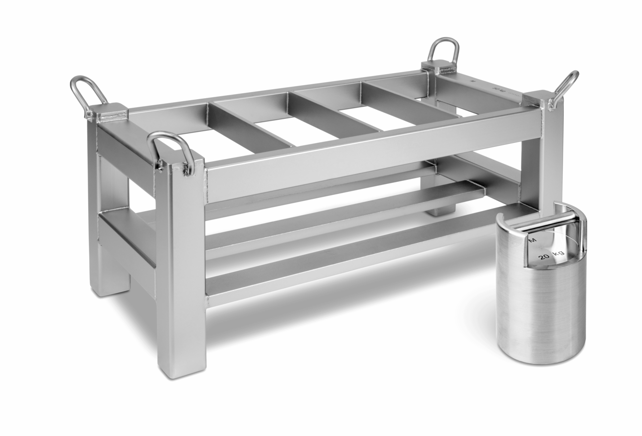 - Standardisierter Gewichtskorb zum Prüfen hochlastiger Bodenwaagen, Palettenwaagen, Wiegehubwagen, Kranwaagen, etc. dienen gleichzeitig auch zur Aufbewahrung der Gewichte
