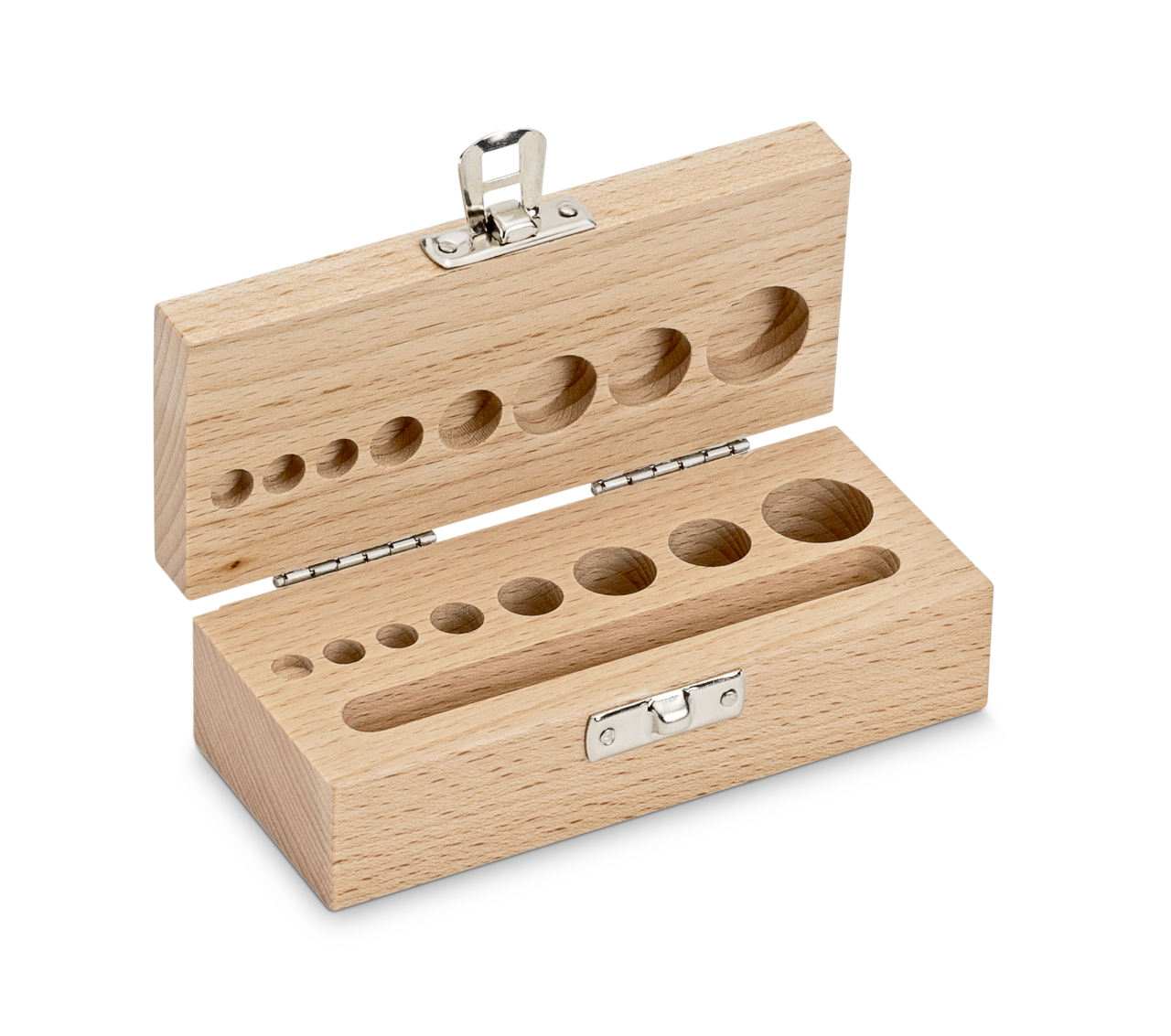 Holz-Gewichtsetui 354-420-200 (für Nennwerte 1 g – 50 g | für Klassen F2 + M1 + M2 + M3 | für Bauform Knopf/Kompakt)