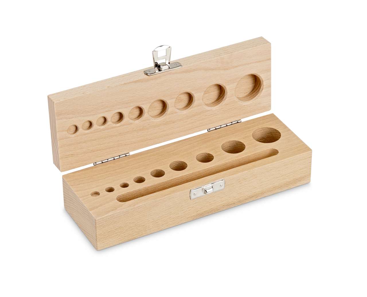 Holz-Gewichtsetui 354-430-200 (für Nennwerte 1 g – 100 g | für Klassen F2 + M1 + M2 + M3 | für Bauform Knopf/Kompakt)