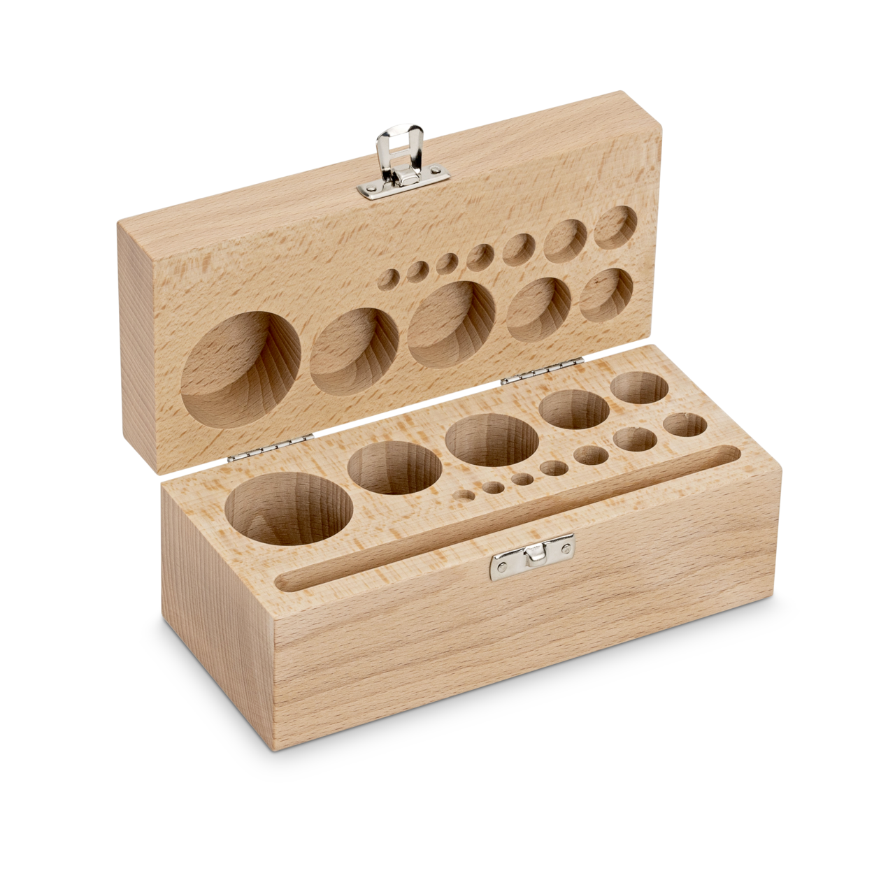 Holz-Gewichtsetui 354-450-200 (für Nennwerte 1 g – 500 g | für Klassen F2 + M1 + M2 + M3 | für Bauform Knopf/Kompakt)