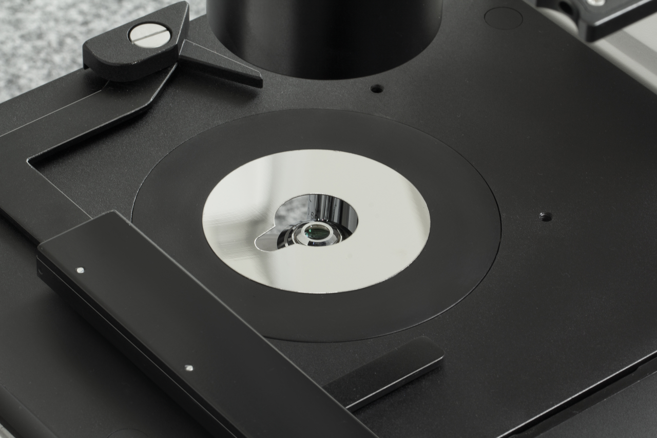 - Der mechanische Objekttisch inklusive Objekthalter (∅ 110 mm) ermöglicht ein schnelles und effektives Arbeiten. Weitere Halterungen für Kulturschalen sind im Lieferumfang enthalten oder als Zubehör erhältlich