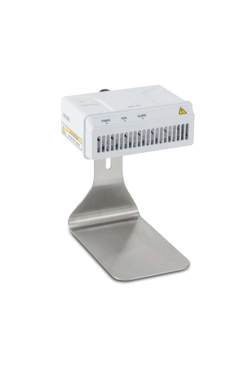 - Er kann mittels des Standfußes bequem neben der Waage platziert oder mit der Hand gezielt von mehreren Seiten auf ein kritisches Wägegut gerichtet werden