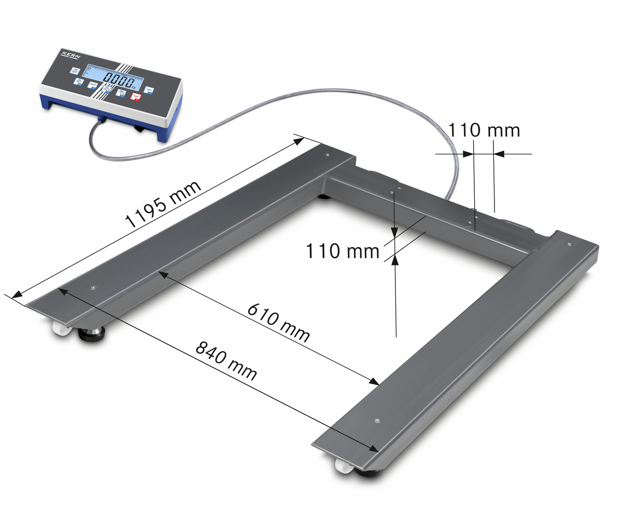 KERN Palettenwaage UID 3000K-0M, Wägebereich 3000 kg, Ablesbarkeit 1 kg