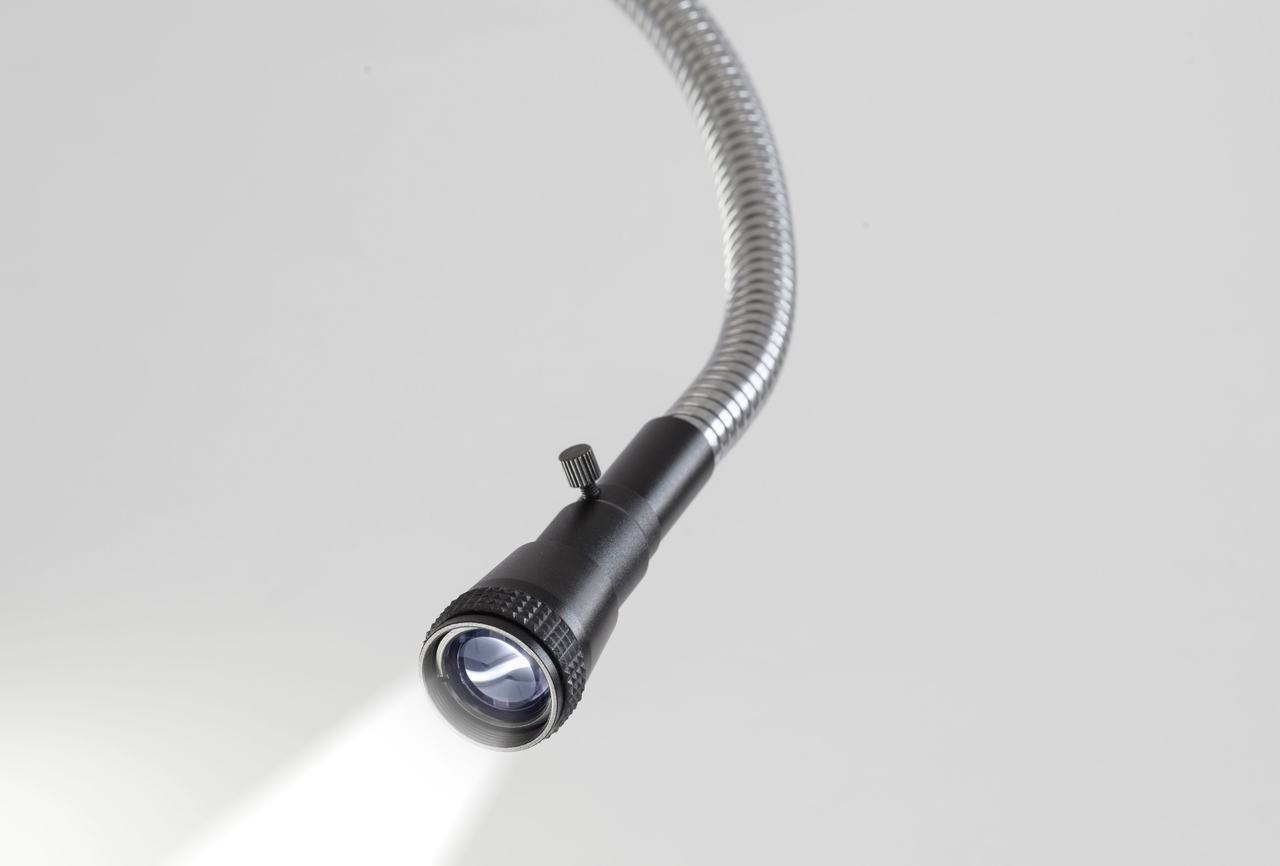 - Mit der 20W-LED-Schwanenhalsbeleuchtung mit fokussierbarem Lichtkegel können Sie Ihre Beleuchtung individuell einstellen. Eine punktuelle oder eine Streustrahlung ermöglicht Ihnen die optimale Ausleuchtung Ihrer Probe
