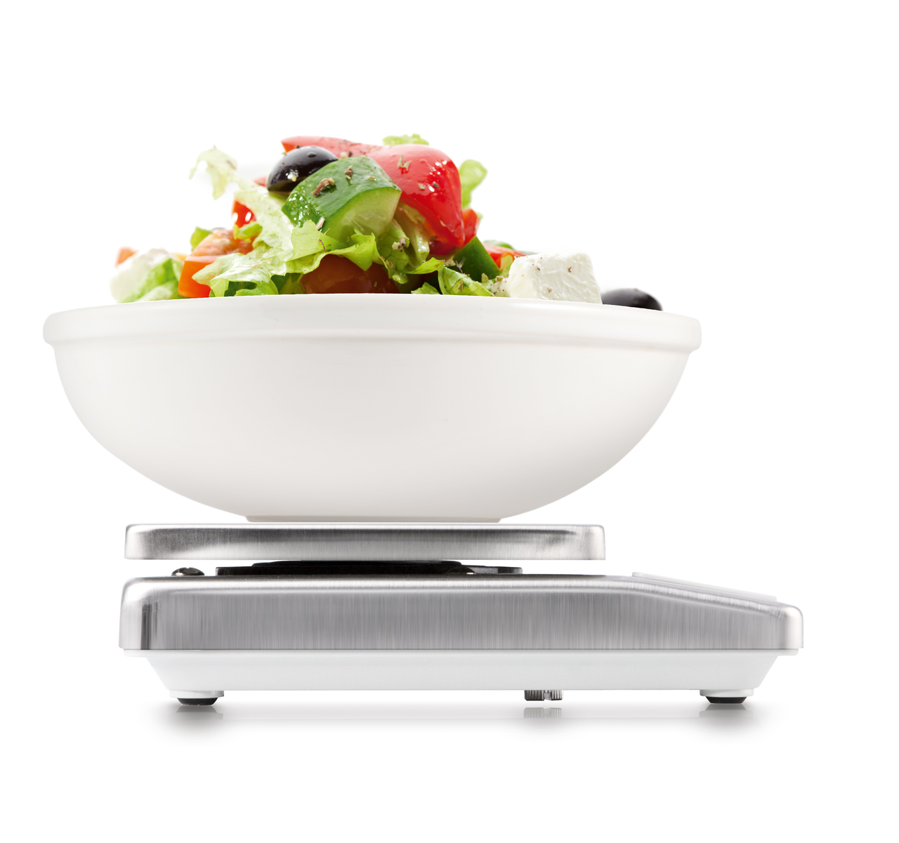- Edelstahlausführung von Gehäuse und Wägeplatte, dadurch rostfrei und dank glatter Flächen einfach zu reinigen