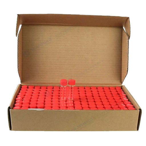 ml Klarglas-Probenfläschchen mit rotem Schraubverschluss (13-425) aus PP und 1 mm dickem Septum aus rotem PTFE/weißem Silikon. 144 Stück/Packung, 5,00 Packungen/Karton