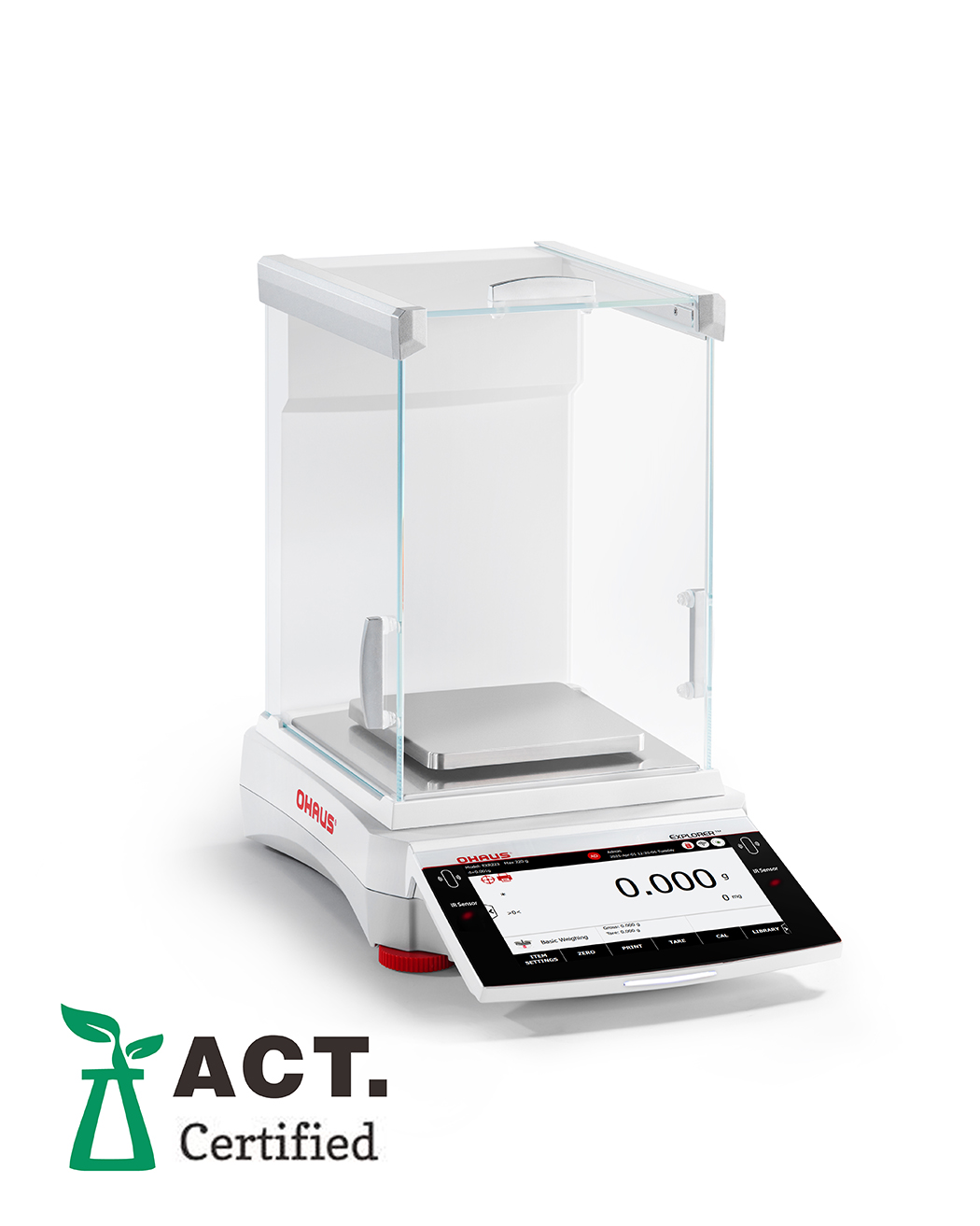 Metallgehäuse, Waagschale aus Edelstahl 316, antistatischer Windschutz aus Glas, 2 berührungslose Sensoren, Terminal-Statusleuchte