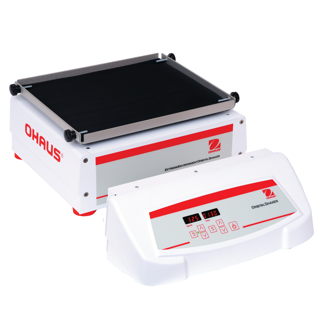 Schüttler für Extremumgebungen von OHAUS wurden für den Einsatz in Anwendungen konzipiert, bei denen für ein optimales Zellwachstum CO2 und Feuchte benötigt werden. Die Fernsteuerung lässt sich über einen Magneten an den meisten Inkubatoren außen befestigen, oder sie kann einfach auf den Labortisch gelegt werden. Die Schüttlerunterlage befindet sich im Inneren des Inkubators und ist über ein 170 cm langes Kabel mit der Touchpad-Bedienung verbunden, so dass eine einfache Steuerung der Drehzahl- und Zeiteinstellungen von außen möglich ist. Dieser Schüttler hat einen Motor mit Schutzart IP65.