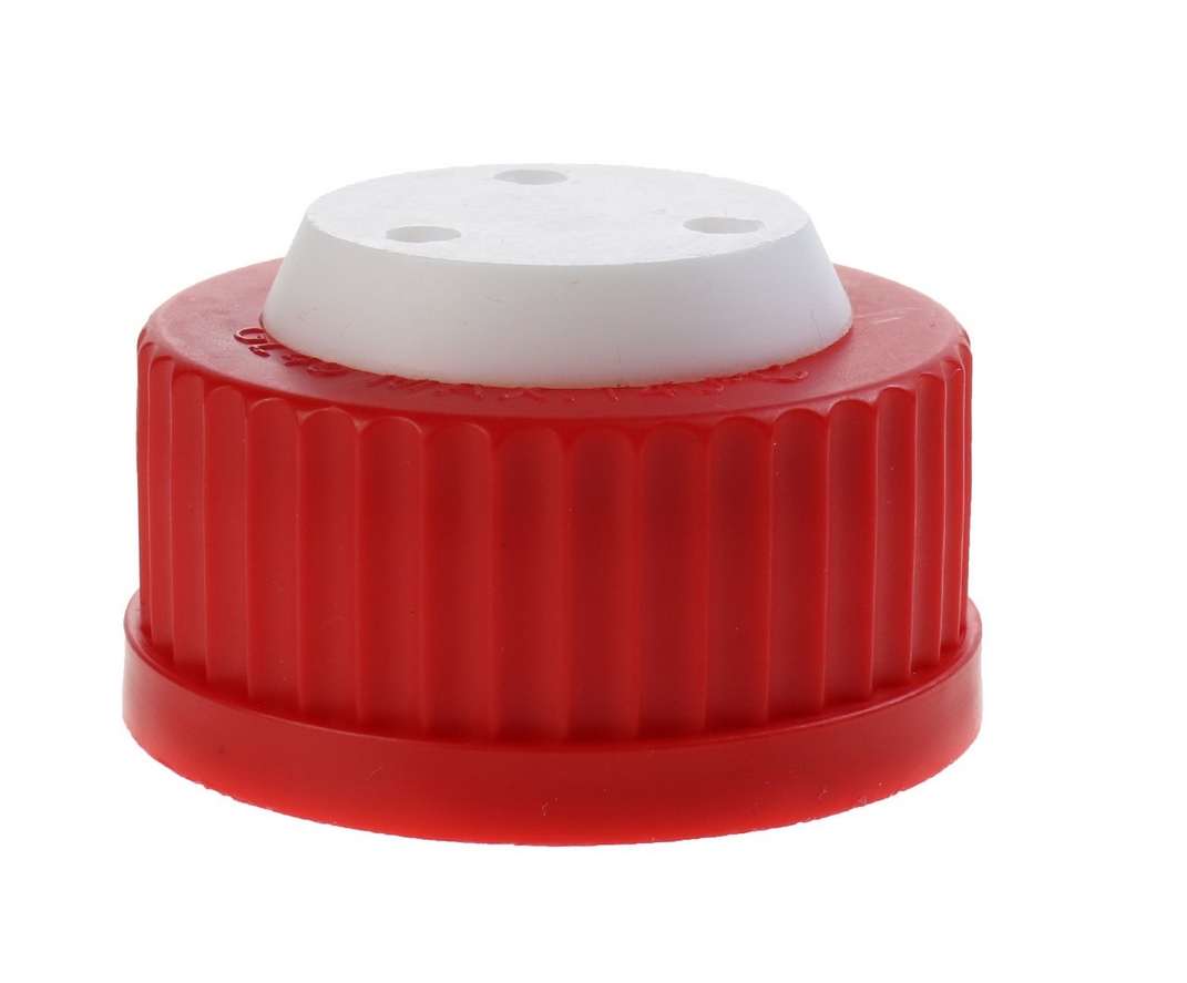 Rote GL45-Sicherheitskappe mit drei Löchern für 1/8-Zoll-Schläuche (Außendurchmesser). 1 Stück/Packung, 1,00 Packungen/Karton
