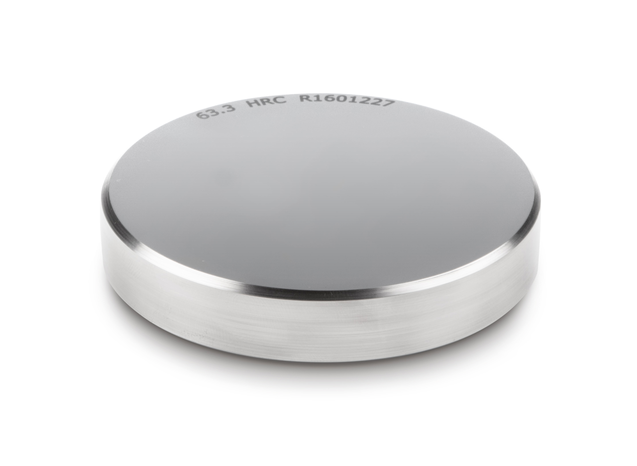 Kalibrier- und Justierplatte (Härtevergleichsplatte) mit definierten und geprüften Stahlhärten zur regelmäßigen Prüfung und Einstellung von Härteprüfgeräten
