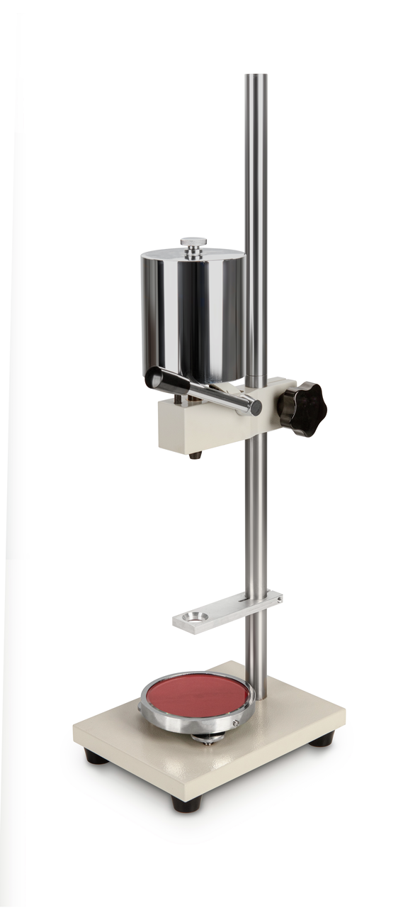 Hebelprüfstand für reproduzierbare Härteprüfungen mit Grundplatte aus Glas