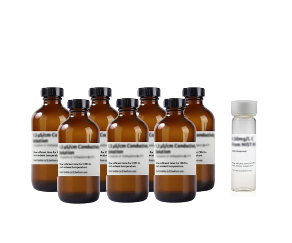 Set includes six 125 mL bottles, (1) water blank, (1) 0.1 ppm KHP, (1) 0.2 ppm KHP, (1) 0.5 ppm KHP, (1) 1.0 ppm KHP, (1) 0.5ppm Na2CO3 and one 40 mL vial of 0.5ppm KHP.