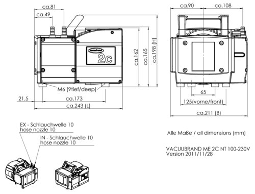 Einstufige Membranpumpen sind ideal für kontinuierliches, ölfreies Pumpen von Gasen bei geringen Vakuumanforderungen. Sie verbrauchen im Gegensatz zu Wasserstrahlpumpen kein Wasser und erzeugen dadurch auch kein kontaminiertes Abwasser. Typische Anwendungen sind die Vakuumerzeugung am Trockenschrank, für Einzelfiltrationen und Mehrfachabsaugvorrichtungen mit mittlerem Durchsatz, sowie allgemein für das Fördern und Evakuieren von Gasen. Der einstufige Aufbau ermöglicht die günstige Kombination von gutem Saugvermögen mit einem Endvakuum von bis zu 70 mbar. Chemie-Membran-Vakuumpumpen sind besonders für Anwendungen mit korrosiven Gasen und Dämpfen ausgelegt. Die abgepumpten Medien kommen nur mit optimal chemikalienbeständigen Fluorkunststoffen in Berührung. Durch das bewährte PTFE-Sandwichdesign der Membrane wird eine hohe Membranlebensdauer erreicht.