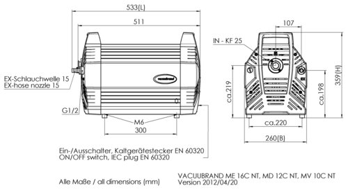 Vierstufige Chemie-Membranpumpen sind ideal für kontinuierliches, ölfreies Fördern korrosiver Gase und Dämpfe und erfüllen höchste Ansprüche an das Endvakuum. Der vierstufige Aufbau dieser achtzylindrigen Pumpen ermöglicht die vorteilhafte Kombination von hohem Saugvermögen mit einem besonders guten Endvakuum bis 0.9 mbar in einem sehr kompakten Aufbau. Die abgepumpten Gase und Dämpfe kommen nur mit optimal chemikalienbeständigen Fluorkunststoffen in Berührung. Durch das bewährte PTFE-Sandwichdesign der Membranen wird eine hohe Membranlebensdauer erreicht. Erweitert mit einem druckseitigen Emissionskondensator (EK) ist die MV 10C NT +EK ein ausgezeichnet umweltverträgliches System mit effizienter Lösemittelrückgewinnung. Ein optional erhältlicher Ansaugabscheider (AK) schützt die Pumpen vor Partikeln und Flüssigkeitströpfchen. Das große Saugvermögen und das besonders gute Endvakuum der MV 10C NT verkürzen die Prozesszeiten erheblich. Die Pumpen erfüllen auch bei parallelen Prozessen beispielsweise an Vakuumnetzwerken hohe Vakuumanforderungen. Weitere typische Anwendungen sind Trockenschränke, Großrotationsverdampfer, Technikums- und Miniplant-Anlagen sowie Kilolabore. Für raue Einsatzbedingungen empfehlen wir einen saugseitigen Abscheider AK als Zubehör zum Schutz der Pumpe. Der druckseitige Emissionskondensator (MV 10C NT +EK oder als Zubehör) ermöglicht die nahezu hundertprozentige Rückgewinnung von Lösemitteln, deren wirtschaftliche Wiederverwendung und aktiven Schutz der Umwelt.