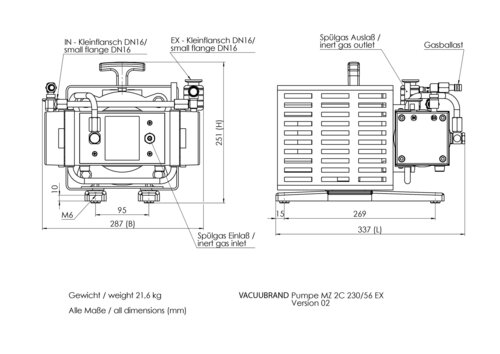 ATEX Chemie-Membranpumpen bieten alle Vorteile ölfreier Chemie-Membranpumpen. Typische Anwendungen sind ATEX-Rotationsverdampfer und -Trockenschränke in explosionsgefährdeten Bereichen. Die ATEX-Zulassung umfasst sowohl das Innere der Pumpen (gepumpte Gase und Dämpfe), als auch die Umgebung der Pumpe (Aufstellungsort). Die medienberührten Teile der Pumpen weisen hohe chemische Beständigkeit auf und sind weitgehend aus antistatischen Materialien aufgebaut. Eine Gasballasteinrichtung als getrennter Inertgasanschluss ist im Lieferumfang ebenfalls enthalten.