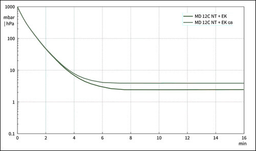 Diese Chemie-Vakuumsysteme finden ein breites Anwendungsgebiet zum Evakuieren, Eindampfen und Abpumpen von Gasen und Dämpfen. Sie bieten besonders hohes Saugvermögen und sind ideal bei erhöhten Vakuumanforderungen zum Beispiel mit hochsiedenden Lösemitteln. Die Basispumpe MD 12C NT erreicht auch mit Gasballast ein sehr gutes Endvakuum und bietet hohe Leistungsfähigkeit in einem kompaktem Aufbau. Die konsequente Auslegung auf höchste Chemikalienbeständigkeit ermöglicht nahezu universellen Einsatz in Chemie und Pharmazie. Der druckseitige Emissionskondensator (EK) ist besonders wirksam und kompakt. Er ermöglicht die nahezu hundertprozentige Rückgewinnung von Lösemitteln für deren wirtschaftliche Wiederverwendung und zum Schutz der Umwelt. Das Vakuum-System ist auch nachträglich mit einem saugseitigen Abscheider (AK) zum verbesserten Schutz der Pumpe vor Partikel und Flüssigkeitströpfchen ausbaubar.