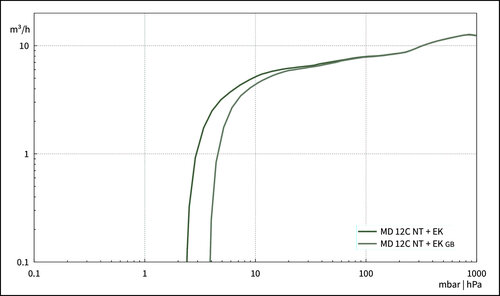 ✔ verkürzte Prozesszeiten durch besonders hohes Saugvermögen, auch nahe am Endvakuum