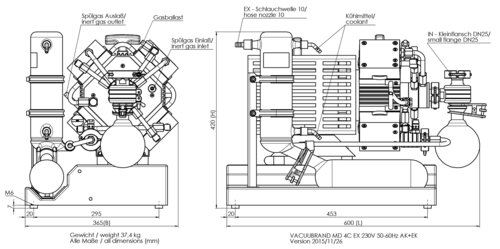 ATEX Chemie-Vakuumsysteme sind anschlussfertige Geräte mit optimal aufeinander abgestimmtem Zubehör. Typische Anwendungen sind ATEX-Rotationsverdampfer und -Trockenschränke in explosionsgefährdeten Bereichen. Der saugseitige Abscheider (AK) aus Glas hält Partikel und Flüssigkeitströpfchen zurück. Der druckseitige Emissionskondensator (EK) ist hocheffizient und trotzdem kompakt. Er ermöglicht die nahezu hundertprozentige Rückgewinnung von Lösemitteln für deren wirtschaftliche Wiederverwendung und zum Schutz der Umwelt.