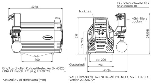 Chemie-Membranpumpen der Baureihe NT sind ideal für kontinuierliches, ölfreies Pumpen korrosiver Gase und Dämpfe. Der einstufige Aufbau ermöglicht die günstige Kombination von gutem Saugvermögen mit einem Endvakuum von bis zu 70 mbar. Die abgepumpten Gase und Dämpfe kommen nur mit optimal chemikalienbeständigen Fluorkunststoffen in Berührung. Durch das bewährte PTFE-Sandwichdesign der Membranen wird eine hohe Membranlebensdauer erreicht. Diese leistungsfähigen Pumpen weisen ein besonders hohes Saugvermögen auf. Erweitert mit einem druckseitigem Emissionskondensator (EK) ist die ME 16C NT +EK ein ausgezeichnet umweltverträgliches System mit effizienter Lösemittelrückgewinnung. Große einstufige Chemie-Membranpumpen sind ideal für kontinuierliches, ölfreies Pumpen großer Mengen von Gasen und Dämpfen. Sie verbrauchen kein Wasser und erzeugen dadurch auch kein kontaminiertes Abwasser. Typische Anwendungen sind die Vakuumerzeugung am Trockenschrank und allgemein für die Eindampfung leicht siedender Lösemittel. Die Pumpe ME 16C NT empfehlen wir für Prozesse mit sehr hohem Gasdurchsatz bei hohen Ansaug- und Prozessdrücken. Die ME 16C NT VARIO minimiert die Gefahr von Siedeverzügen sowie Aufschäumen und ermöglicht dadurch eine hohe Prozesssicherheit. Die Prozesse lassen sich vollautomatisch und zugleich beschleunigt oder besonders schonend ausführen.