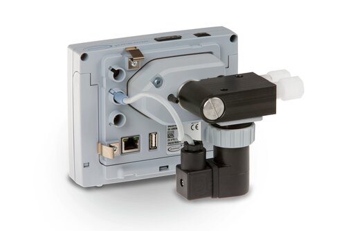 ✔ die Vakuummessung findet im Ventilblock statt – Anschluss des VACUU·SELECT Kompakt-Controllers einfach zwischen Pumpe und Vakuumanwendung